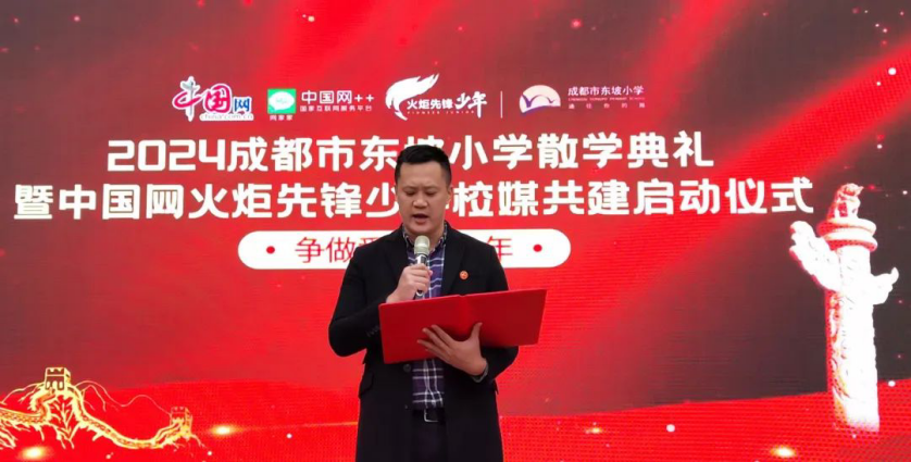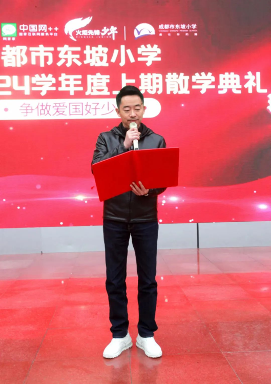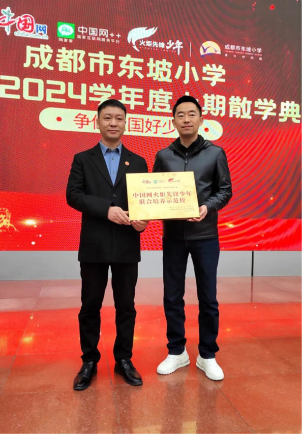 往昔荏苒,耕耘的喜悦敲响全新的章程;沐光同行,绽放的花朵追寻奋斗的脚步。2024年1月18日下午成都市东坡小学举行2023-2024学年度上期散学典礼暨“中国网火炬先锋少年联合培养示范校”授牌仪式。中国网火炬先锋少年四川事业部部长李强同志、副部长罗君同志、副部长傅立同志代表“中国网火炬先锋少年”莅临成都市东坡小学散学典礼现场。