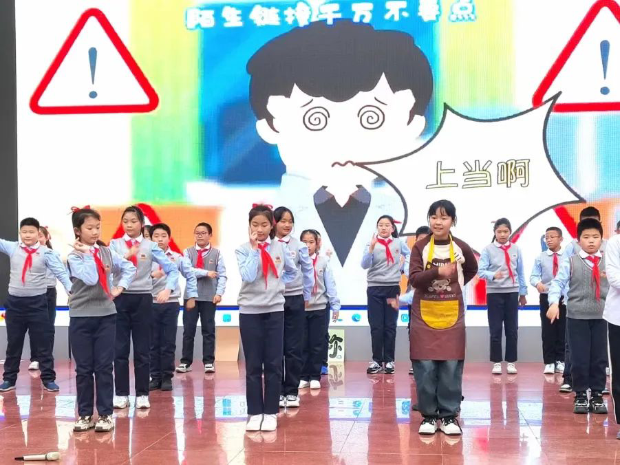 此外,成都市东坡小学2019级5班的同学们也为全体师生精心筹备了节目,以歌舞结合教育小品的形式提醒大家在度过愉快寒假的同时,也要保护好自身的生命和财产安全。