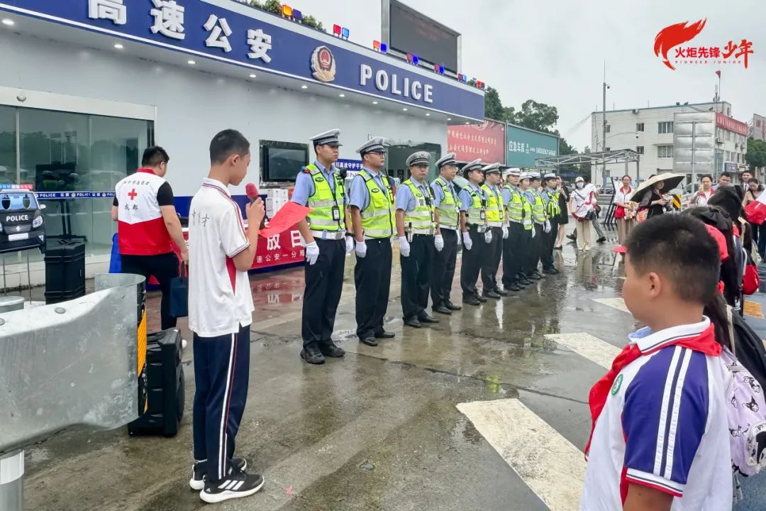 小志愿者们以少先队敬礼和唱歌的方式,向这群城市的守护者致以最崇高的敬意。他们的眼神中闪烁着对高速交警的崇拜与敬仰,每一个动作都充满了真诚与感激。