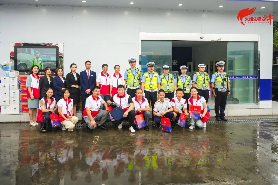 在简短的慰问仪式上,小志愿者代表傅博禹同学,以清脆响亮的嗓音宣读了慰问信,信中字字句句都饱含了对交警们无私奉献的感激与敬仰。随后,一束束精心挑选的鲜花被小志愿者们小心翼翼地递到交警手中,那雨中的花朵更显娇艳,仿佛是大自然也在为这份温情加冕。